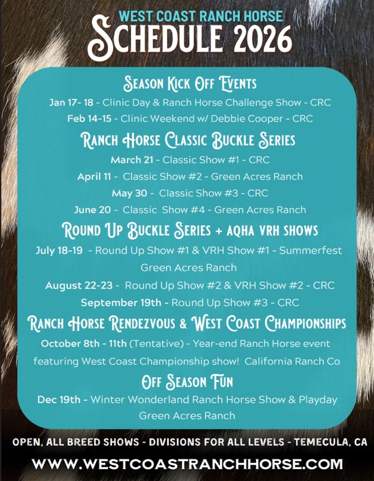 West Coast Ranch Horse is excited to add one more show to our 2025 schedule! Join us for our Ranch Horse Challenge show on March 30th at Gr...